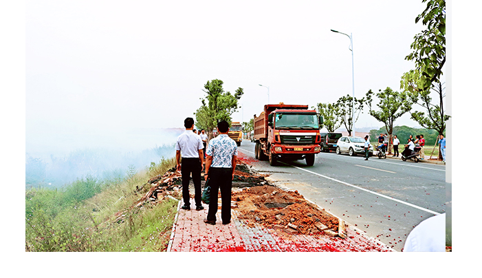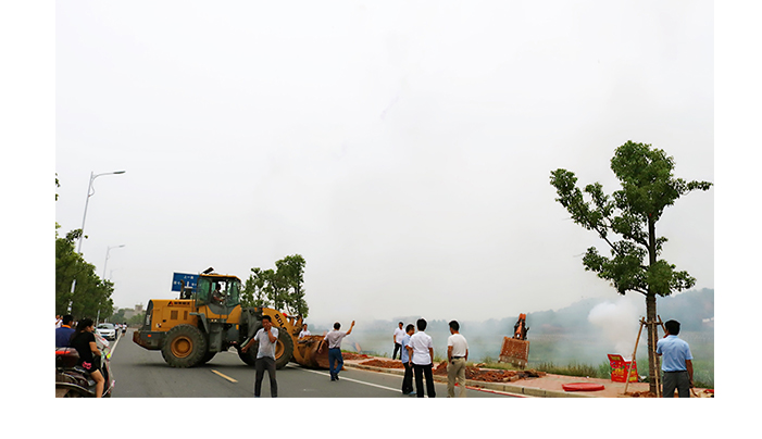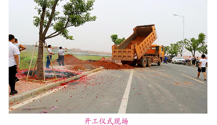 开工仪式结束后,施工工地上鞭炮齐鸣,烟花飞舞,烟雾缭绕,几台大型挖掘机械在烟雾中,隆隆的马达声,震耳欲聋,场面热烈而又震撼。